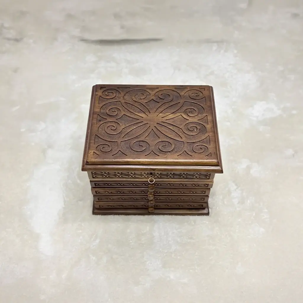 El oyma ceviz kutu, hem estetik hem kullanışlı. Koleksiyonluk olarak odama klasik bir dokunuş kattı.