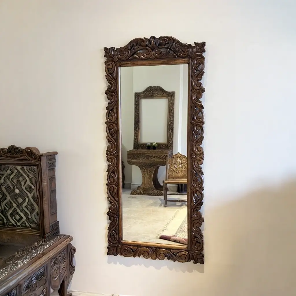 Büyük boy ahşap ayna aldım, el oyma detayları kaliteli ve boyutu ideal.