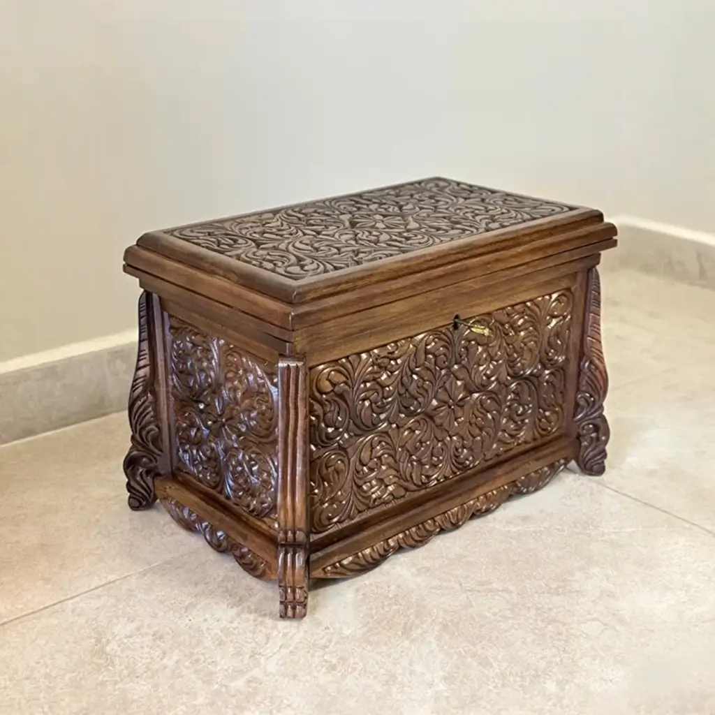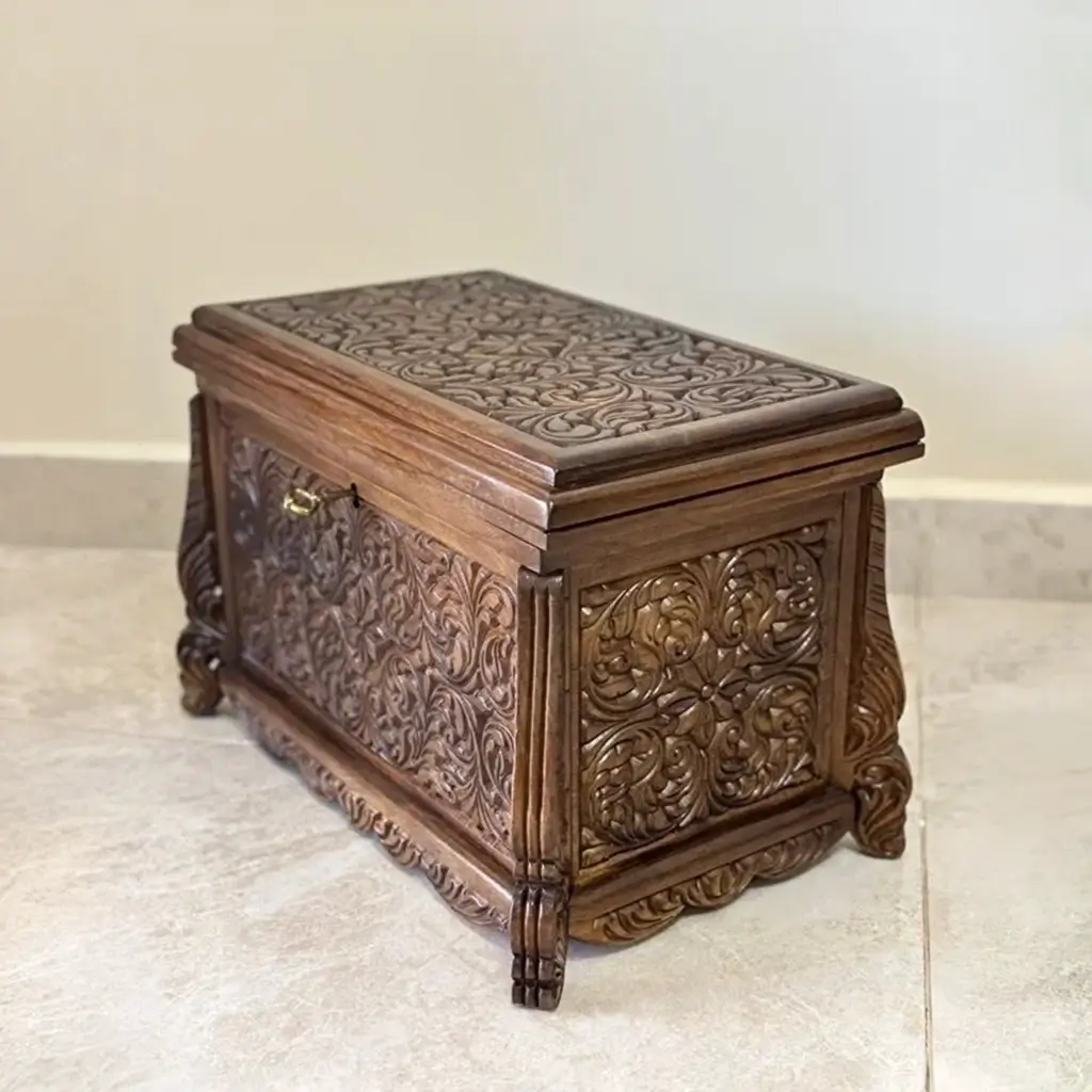 Maraş El Oyma Ceviz Ahşap Çeyiz Sandığı – 50x30x30 cm | Erva Natural Model