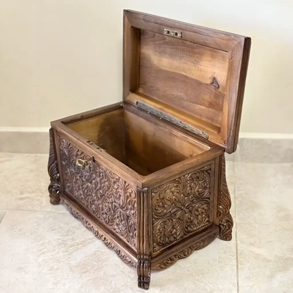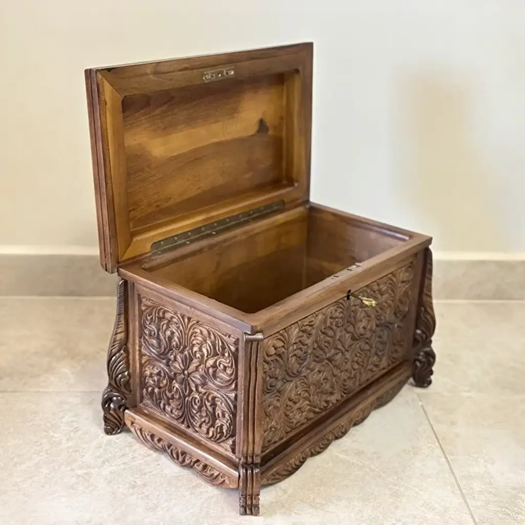 Maraş El Oyma Ceviz Ahşap Çeyiz Sandığı – 50x30x30 cm | Erva Natural Model için 6 yorum mevcut